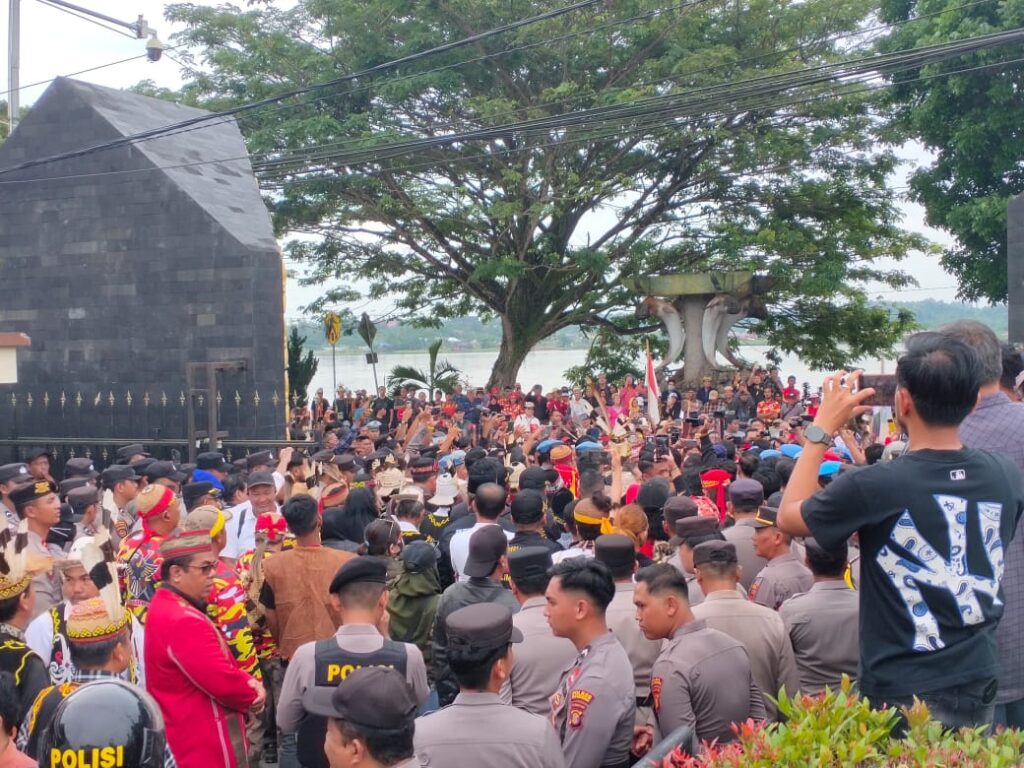 Karsaloka.com, Kutai Kartanegara – Ratusan masyarakat adat menggelar aksi damai di depan Mapolres Kutai Kartanegara (Kukar), Jalan Wolter Monginsidi, Tenggarong, Senin (25/8/2025). Aksi yang dipimpin koordinator lapangan Thomas Fasenga ini diikuti sekitar 250 orang. Mereka menuntut pencopotan Kapolres Kukar AKBP Dody Surya Putra yang dinilai arogan, serta meminta aparat kepolisian menghentikan kriminalisasi terhadap warga adat.