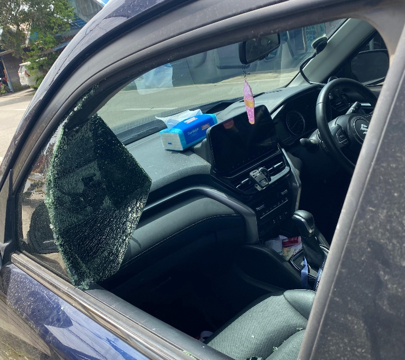 Korban kemudian masuk ke kafe untuk melakukan reservasi tempat arisan keluarga. Tidak sampai sepuluh menit, ia kembali ke mobil dan mendapati kaca bagian kiri depan telah pecah. Uang Rp40 juta yang disimpan di bawah injakan kaki penumpang depan, raib dibawa pelaku.