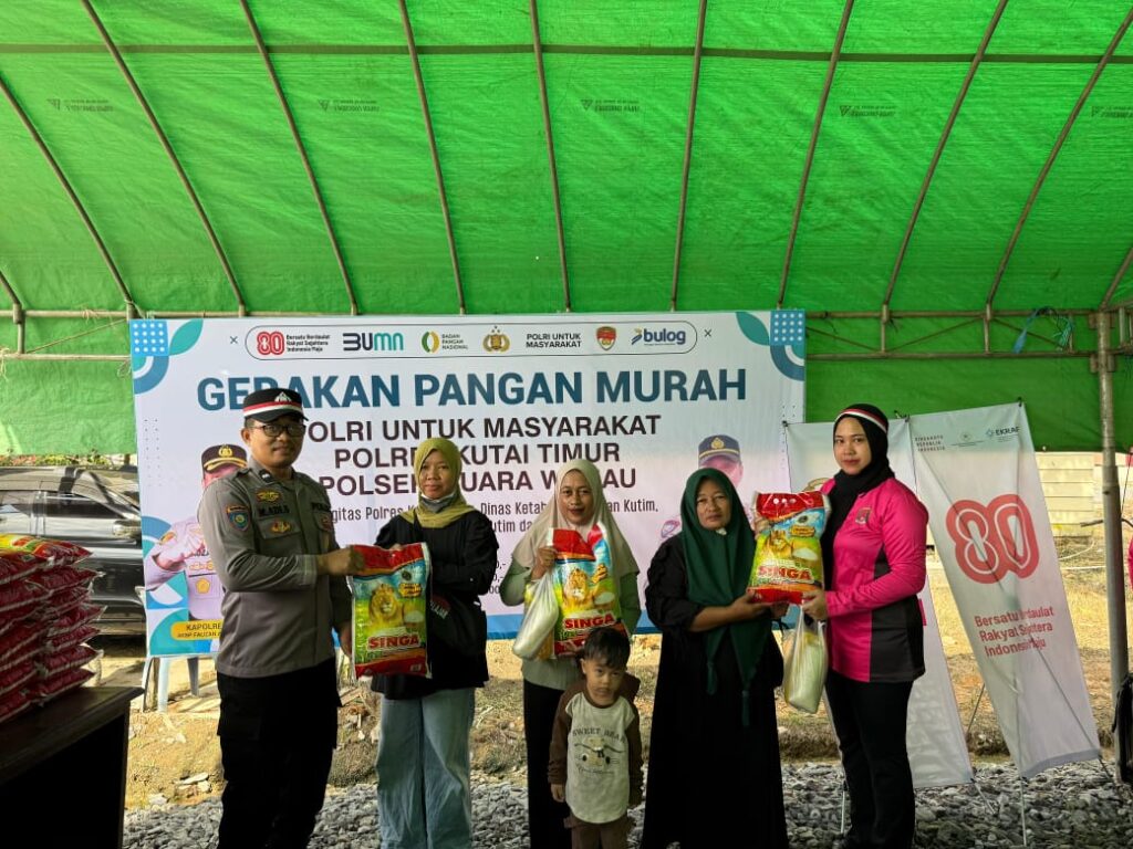 Karsaloka.com, Kutai Timur — Polsek Muara Wahau menggelar Gerakan Pangan Murah (GPM) yang dipimpin langsung Kapolsek AKP Satria Yudha WR. Kegiatan ini menyediakan 100 paket bahan pokok (bapok) murah untuk masyarakat.