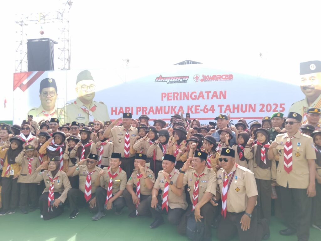 Karsaloka.com, Kutai Kartanegara – Upacara peringatan Hari Pramuka ke-64 berlangsung khidmat di Lapangan Kantor Bupati Kutai Kartanegara (Kukar), Kamis (14/8/2025). Kegiatan ini dihadiri jajaran Pemerintah Kabupaten Kukar, pengurus kwartir cabang, dan ratusan anggota Pramuka dari berbagai tingkatan.