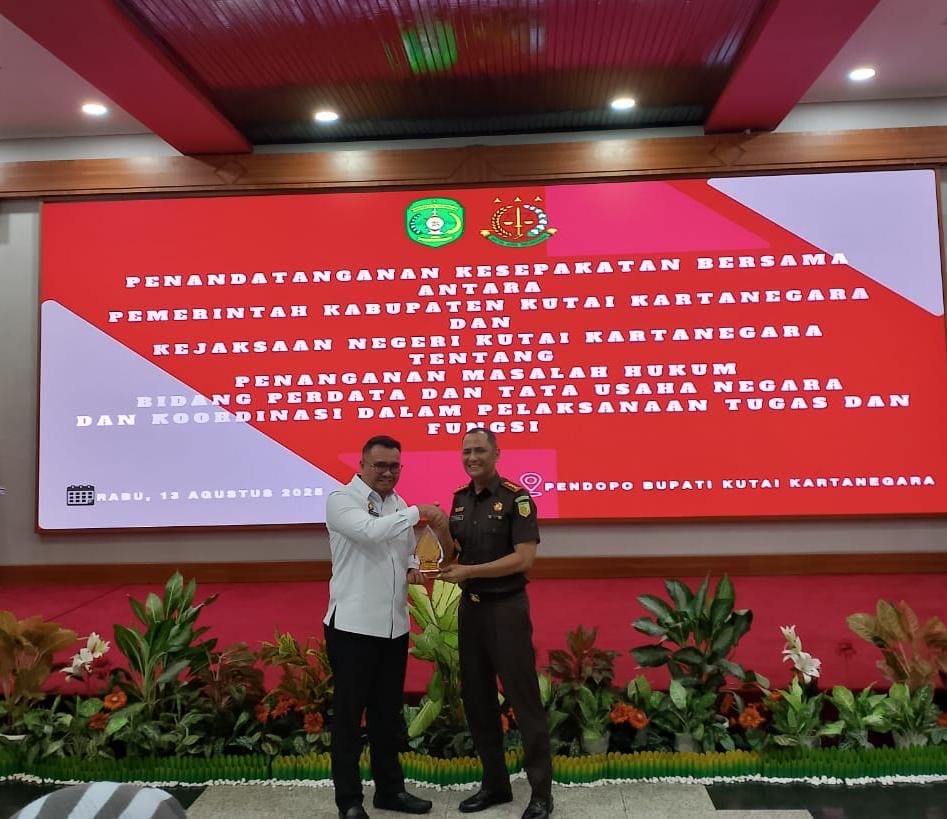 Karsaloka.com, Kutai Kartanegara – Pemerintah Kabupaten Kutai Kartanegara (Pemkab Kukar), menggandeng Kejaksaan Negeri (Kejari) Kukar untuk memastikan pelaksanaan pembangunan berjalan sesuai aturan, dan bebas dari persoalan hukum. Kerja sama ini ditegaskan melalui penandatanganan kesepakatan bersama di Pendopo Odah Etam, Tenggarong, Rabu (13/8/2025) pukul 09.00 Wita, yang mencakup penanganan masalah hukum di bidang perdata dan tata usaha negara, serta penguatan koordinasi tugas dan fungsi.
