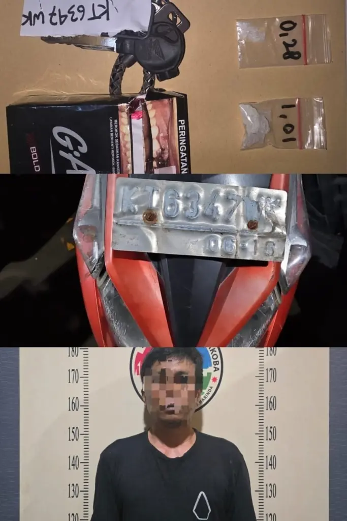 Tersangka berinisial RT (40), warga Kelurahan Gunung Kelua, berhasil diamankan oleh petugas saat sedang berada di pinggir jalan. Dari tangan pelaku, polisi menyita dua paket sabu dengan total berat bruto 1,29 gram, yang disembunyikan di saku celana dan di dalam jok sepeda motor miliknya. Selain sabu, polisi juga mengamankan barang bukti lain berupa satu kotak rokok, uang tunai sebesar Rp150.000 hasil penjualan sabu, satu unit ponsel, dan sepeda motor Honda Vario KT-6347-WK.