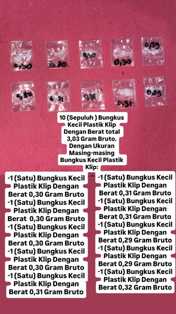 Kedua pria tersebut berikut barang bukti langsung dibawa ke Mapolsek Samarinda Kota. Setelah dilakukan pemeriksaan, sabu yang disita memiliki berat total 3,03 gram.